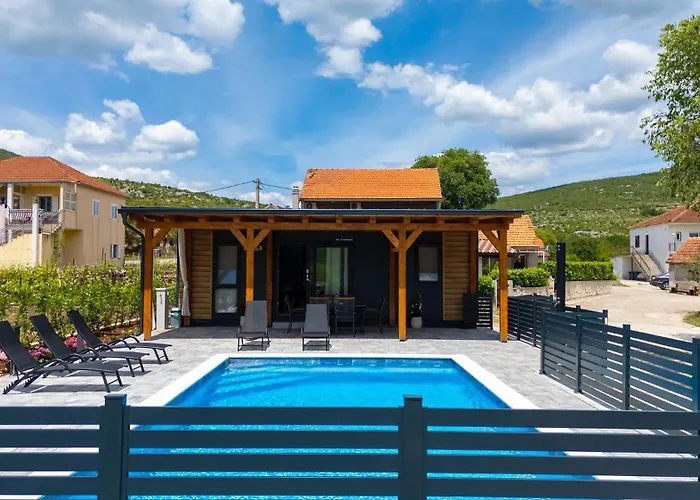 Mobile Home Kapo Sitno Donje is located 3.7 km from Sv. Petar and offers guests to enjoy their evening on a terrace with a swimming pool.